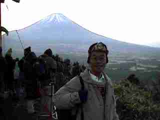 未明の富士を背にする筆者です。