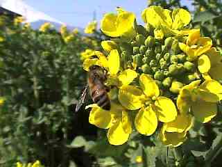 富士吉田市富士見町、梅は3月末既に盛りを過ぎていました。(上左) 下の水の菜の花は満開でした。(上右) |