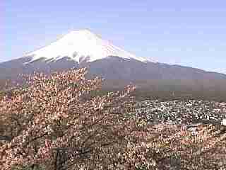 上:富士吉田市忠霊塔から桜と富士