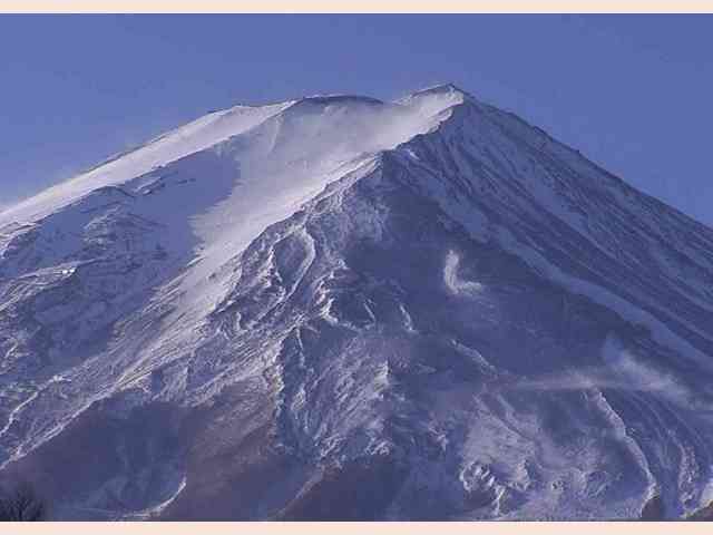 | 真冬の寒さが厳しく晴天の日、富士は雪煙のような雲を上げる(上) |