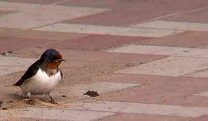 右はツバメ 写真は富士急ハイランド駅前のローソンの軒先に 営巣したツバメ、巣の材料を落としたのか ここから拾って巣に戻りました。 富士吉田市寿の高速道路の下では イワツバメを見ることができます。 |