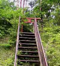 車道から階段を上って鳥居をくぐるとすぐ丸尾のごつごつした石の上の道なので、靴は登山靴かウォーキングシューズが最適です。階段から吉田胎内までは400m程度ですので、往復でも普通に歩くと15分ぐらいです。 |