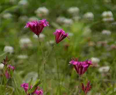 ムシトリナデシコも上のようにたくさんだときれいですね。 (山中湖から富士吉田に来る国道の右側の畑一面に咲いていました。道端にはあちこちに咲いています。子供の頃お墓で遊んでいましたが、お墓にも良く咲いていました。) |
