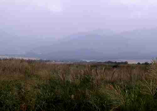 8月の日曜日は殆ど雨模様で、上のように遠くは霞んで見えなかった。 手前は広大なススキの原野である。道路はあるが、丸尾を整地しただけなので 雨によっていたるところが削り取られている。 主要道路でも路肩に落ちると危険な場所もある。 演習場は不発弾もあり、過去に事故も多くある。 入っても、主要道路から外れないで、不慮の事故に遭わないよう注意が必要だ。 |