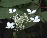 ノリウツギ この木も上のタケニグサと同じように枝が中空になっているので空木(うつぎ)と名がついたそうです。木の皮から製紙用のノリを採ったのでノリウツギと呼ぶそうです。(出典:富士山自然大図鑑、静岡新聞社)紫陽花に似ていますね。 |