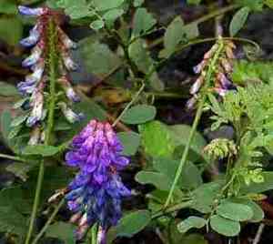 「クサフジ」 土の上を這うように広がり 濃い青紫の花が房に成る |