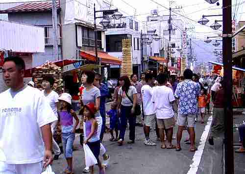 | 午後5時頃になるとどこからともなく集まった人々で通りはいっぱいになる。各家々の前には薪が背丈以上に積み上げられる。 |