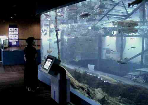 普段見れない川魚の泳いでいる姿を近くで見ることが出来る。また、魚の解説にはコンピューターをうまく活用している。 シアターホールでは「山梨にすむ魚たち」などの上映をしている。 |