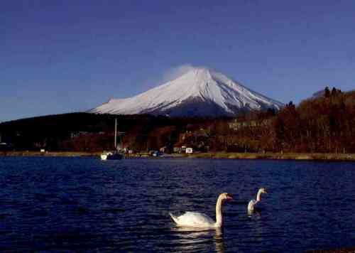 山中湖には白鳥がいます。 上は平野からのもので、あまりにも良い天気で 観光写真のような光景が撮れました |