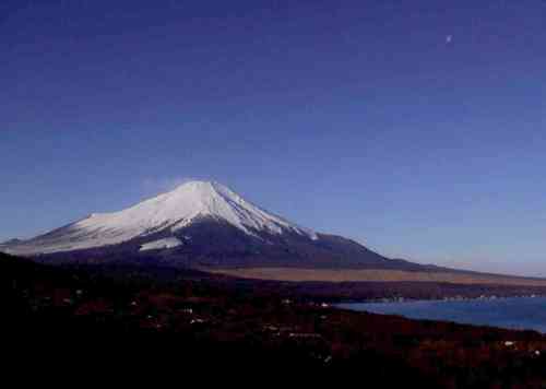 上の写真は4日の夕方、山中湖からの富士山です。 新しく整備された北岸の駐車場近くからの富士です。 このあたりからは2月10日頃山頂に沈む太陽を観察できます。 正月4日は山頂の左側に太陽が沈みますが、日没の瞬間 雲の様子により上のようにダイナミックな景色が撮れます。 |