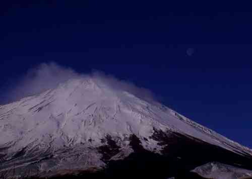 三日の朝はすばらしい天気となりました。 上の写真は須走からのものです 月と富士をいっしょに撮りたいと場所を探していて なんとか撮れたのが上の写真です。(月が右上空にあるのですが分かるでしょうか) |