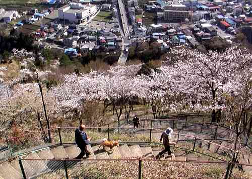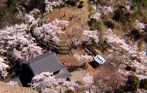 昔から猿橋と並んで名所の岩殿山ですが、今回何十年かぶりに登って桜を堪能しました。JR大月駅からも近く、昔と違って登山道も良く整備されているので、非常に急斜面ですが、ゆっくり登ればだれでも楽しめるポイントです。もっとも登山と言うのには低すぎるので、ハイキングコースの方が適当です。 (標高634m、大月駅から50分で下に到着、登山に30分) |