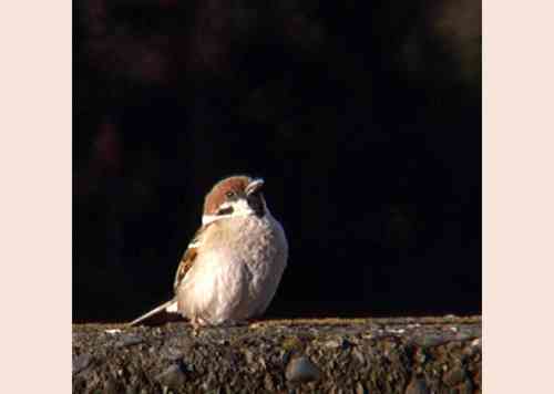 | スズメ:まいどおなじみの野鳥ですね。良く見るとかわいいですね。忍野村内野 |