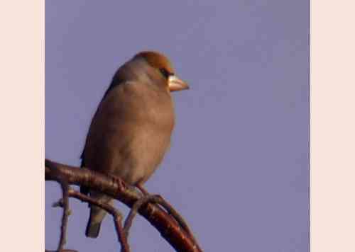| シメが家の近くで良く撮れました。ちょっと怖い顔つきですね。天気が良いと上のようにきれいな色に撮れますが、天気が悪いと下のように色が良く分かりません。富士吉田市竜ヶ丘 |