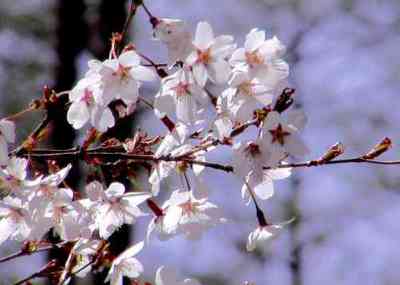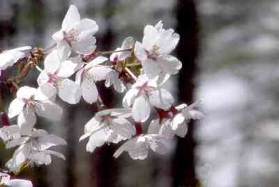 しかし、桜はカレンダーと時期こそ違うが、例年どおりきれいな花をいっぱいにした。 ソメイヨシノのような華やかさは少ないが、松林の中を可憐に飾った富士桜はやはり見事なものだ。 |