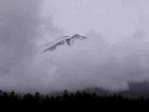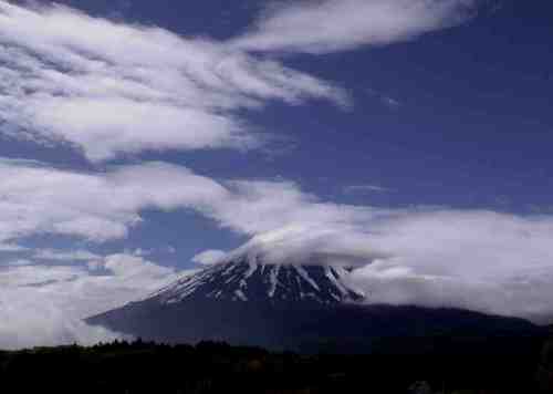 | 上:雲の流れに抗して富士山が踏ん張っているようですね。鳴沢から撮影 | |