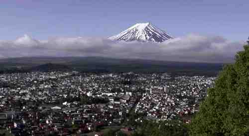 上:こんなすばらしい天気もありました。この日は雲が上がり五月晴れになりました。 富士吉田市忠霊塔裏より撮影 |