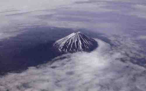 | 上:「雲をかき分けて突き進む富士」のように見えますね。羽田→福岡機上から撮影 | |