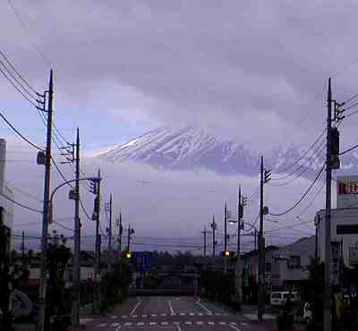 上:今回は雲の合間の富士山ばかりでした。 富士吉田市上吉田、5月5日浅間神社のお祭の日の朝 |