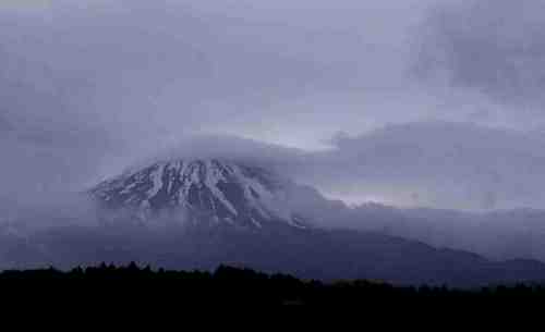 | 上:「雲をかき分けて突き進む富士」のように見えますね。鳴沢から撮影 | |