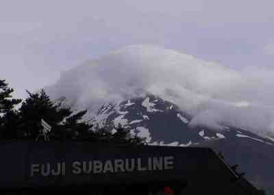 | 上:山頂が雲で覆われ天気が不安。スバルライン料金所から撮影 | |