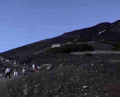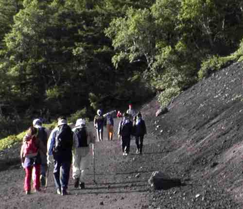 | 上:吉田口を下山する登山者 |