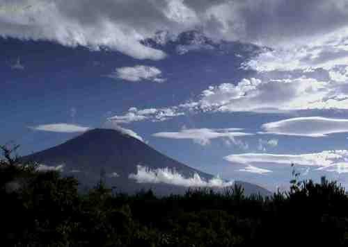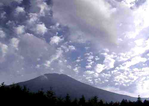 | 下:富士山頂から放射状に広がる雲。快晴のスバルライン途中で良く目にする雲だ。 |