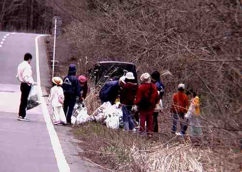 2003年4月19日NPO「富士に学ぶ会」など6団体は富士吉田市が開催した「不法投棄物一斉除去事業」簡単に言うと「朝の清掃」活動に参加しました。