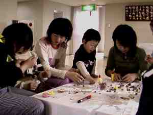 | どの実をつけようかな・ブローチづくりを楽しむ参加者 | |