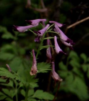 去年咲いていた場所を今年も期待したが、今年は別の場所に咲いていた。しかし、今年の場所も、去年の場所も少し薄暗く、ややじめじめした場所だった。 鳴沢の林の中を通る道は晴れても陽光が射す時間が短く、湿気が高い。その環境がこの花には最適なのだろう。 洗濯物が乾かなくってこまる家内の顔が目に浮かんでくる。 上から2枚目と3枚目はアマドコロだ。これはチゴユリほど小さくないがそれでも30cm程度の高さだ。(山と渓谷社「日本の野草」によると30cmから80cmにもなるそうです)しかも、上から覗き込むと葉が邪魔をして花が見えない。チゴユリと同じように地面に顔をつけるように覗き込むと提灯をぶら下げたようにいくつもの花が垂れ下がっている。今年の写真は5月上旬だったので、花数が少ないが、昨年はたくさんの花がぶら下がっていた。これもチゴユリと同様日陰のじめじめしたところに咲いている。可憐で愛でたくなる花だ。 これらに比べるとやたらに派手で自己主張が強く、まさに雑草としている花が下のキケマンとムラサキケマンだ。タツノオトシゴかラッパの先か面白い形の花がたくさんついて群生している。こちらは太陽の当たる場所にも多いのですぐ目につく。色は全く違うがよく似ている。親戚の花かも知れない。6月は5月以上に草花が楽しめる月だ。花を追いかけて忙しい月になりそうだ。 ○2003年6月目次へ |
