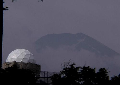 | 6月は露の前触れからか曇りや雨ばかりでした。富士山が見えるのは、そんな雲のちょっとした合間でした。でも、晴れてみると、富士吉田市の鐘山に新しい話題がありました。レーダードームです。上の写真のように富士山とツーショットが実現していました。これからの楽しみのスポットになるでしょう。ところでレーダードームは昭和40年に富士山頂の剣が峰に設置されました。瑞穂通信2002年12月