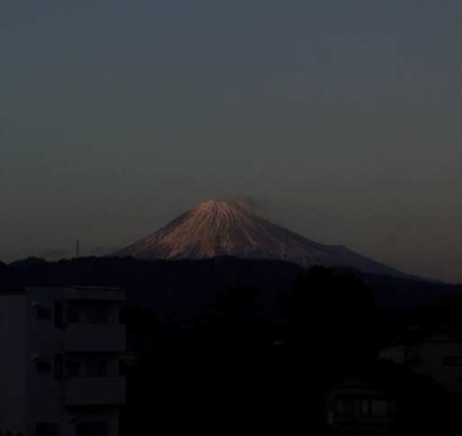 左は夕焼けの富士山、掛川と静岡の間だとおもいます。富士北麓の人は北からの富士が一番きれいだと言います。静岡の人は静岡からの富士山が一番きれいだと言います。どこから見てもそう言われる富士山はどこから見てもすごいですね。富士は時と場所の二つの要素でものすごく多様な姿を見せてくれます。