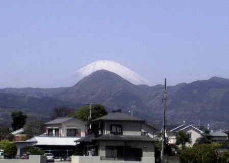 | 桜とのショットは全て早朝なのと、やはり地元ですので、富士山もくっきりですが、こんなに近くても昼から午後にかけてはボーっとしちゃいますね。えっ!私じゃなくて富士山の容姿がぼけるんですよ。ところで面白いショットが撮れました。右のショットです。富士山と手前の山が丁度重なって見えたんです。小田急線からですが、新松田近くからでしょうか。 | ||||||