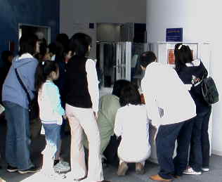 | 保全にも強い関心を持って活動していた。(明治45年生まれ昭和55年没)このコーナーでは新田次郎の遺品や小説を全て置いてあり、小説は自由に読むことができる。館内は1階が「富士山レーダーの軌跡」2階「富士山からの気象観測」3階「35年の役目を終えて」で構成されている。2階に上がると気象観測コーナーでは山頂の気象条件体感コーナーや気象観測クイズコーナーが人気をはくしていた。(下はクイズコーナーとレーダー観測員体験コーナー) | ||||||||||||||