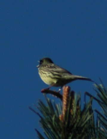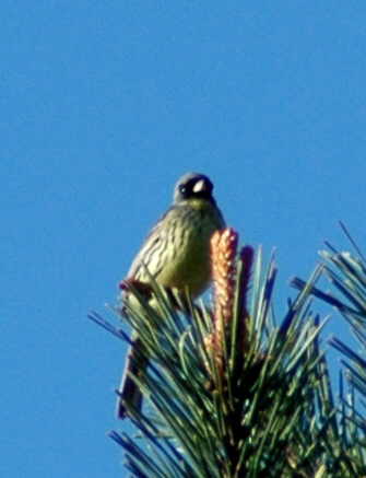 | 五月晴れの演習場は空が抜けるほど良い天気でした。アオジの声が美しく、姿もキャッチできました。それにしてもアオジの顔は雲助のようではないですか。それとも映画のZマンでしょうか。身体がアオっぽいのでアオジなんでしょうかね。