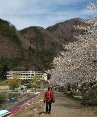 河口湖は全国でもめずらしいブラックバスを放流している湖で、早朝から釣りを楽しむ人が大勢来ている。大きな釣堀と揶揄される程だが、引きを楽しむ釣り人にとっては貴重な湖になっている。そんな釣り人のための入漁券を販売している漁協が美術館通りの中央にある。ここから湖畔に入り、昔から貸しボートなどをやっている民宿「ハワイ」、そば処「湖舞家」を横に見る湖畔の道は湖岸に芝桜、道沿いに桜がいっぱいのちょっとした広場があり、早朝から散歩やランニングをする人が絶えない。