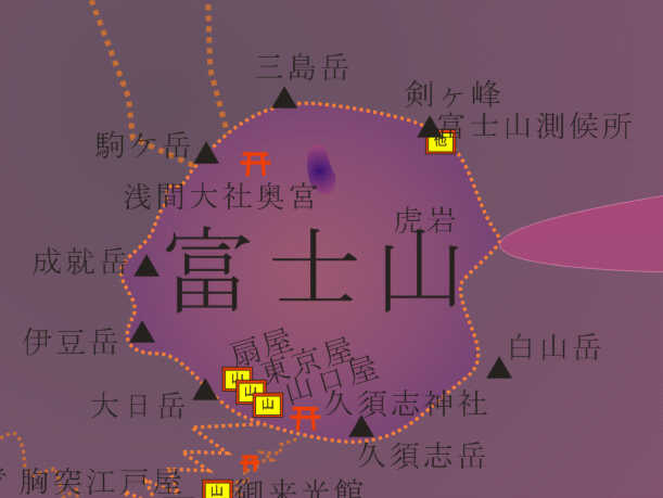 ここで、意外な事実を発見してました。富士山頂にはいくつかの峰(八峰と言われている)があります。