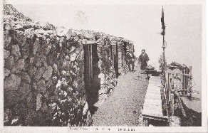 左の図9は現在の滝沢林道との交差点より少し下にあった茶屋天地界、この前後には今も建物の崩壊した跡が数ヶ所残っている。昭和39年スバルライン開通以降登山客が激減したために、放置された茶屋跡だと思う。右の図10、11は小御岳神社、下の図12は6合目の石室、ここから上は石で建物を囲う石室となる。 図13は東洋館、図14は現在は8合目となっている蓬莱館、当時は7合目だった。 |