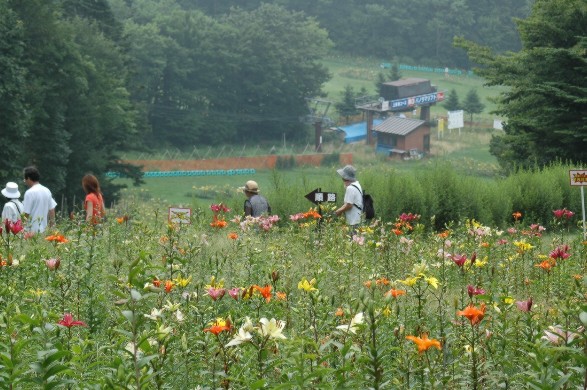 | 色とりどりのユリを撮るのもよし、富士山とユリを上手に撮るのもよし、腕の見せ所だろう。ユリ畑の脇には、自然の草花も咲き乱れている。時間の経つのを忘れさせてくれる。 ショッピングと食事園内で咲いているユリの販売もしている。我が家でも今年数輪の大きなユリが咲いた。ここで買い求めてきたユリだ。この他にも色々な土産がそろっている。もちろん食事や軽食もとることができるので、ゆっくりとした時間をすごすことができる。 ロケーションリフトの下は東経138.41.18北緯35.26.29標高1254m、リフトの上で標高1461m(瑞穂通信調べなので少し違うかも知れない)おおむね2合目の高さを標高差100m、リフト距離1km、夏でも涼しい、時によっては寒いぐらいの場所だ。 |