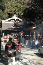 | 平成20年元旦、富士は青空の下その秀麗な容姿を惜しむことなく見せてくれた。日本海側の大雪と対照的にここ富士五湖地方は快晴の元日を迎えた。 富士吉田市北部に位置する新倉富士浅間神社にも大勢の初詣客が訪れている。そんな、浅間神社本殿から笛と太鼓と鉦の音が聞こえてきた。 12年ぐらい前から復活した新町獅子舞保存会のメンバーによる獅子舞奉納が行われていた。 獅子舞は全国で継承されている民族芸能だが、娯楽の多様化で後継者不足となり途絶えているところも多い。新町獅子舞もその一つだったのだろう。12年程前に保存会を発足、新年の獅子舞奉納を復活させたようである。 車、コンビニ、携帯、ネットの便利さだけを優先させた社会に笛、太鼓、鉦の舞は安らぎを取り戻してくれると感じるのは私だけでないだろう。 元旦に忘れかけた人と人との助け合いが当たり前になる安らぎの一年を迎えられるよう、若い世代の舞が続いていた。 |