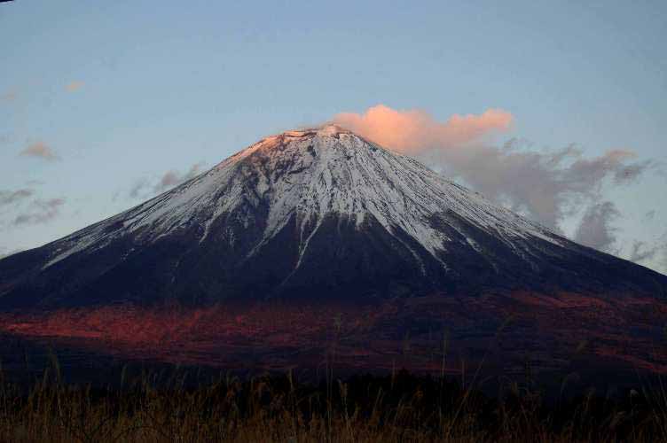 富士市から見る富士山は表口登山道が正面になる。宝永山の突き出た三角形の山形が良く分かる。ざっくりとえぐり取られた火口が富士山の身体半分にも見える。宝永噴火がもう少し山頂によっていたら今の富士山の姿はなかったかもしれない。 こどもの国を過ぎると手前に海が見える。 まっすぐ進むと富士市中心に進むが、勢子辻で右に折れる。 勢子は狩の鳥獣を追い出す人、ここは富士の巻狩りにちなんだ地名が多い。 国道469号から県道72号に入る。昔に比べて道路が良くなった。それにしても路肩のポイ捨てのゴミは目に付く。富士山の上の方はきれいになってきたが、周辺のゴミはまだまだである。 富士山が赤く輝き始めた。夕陽が前方の山に沈もうとしている。白糸の滝を過ぎ「風の湯」の近くでパチリ。 |