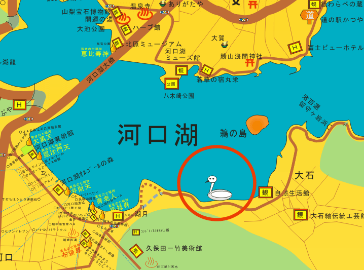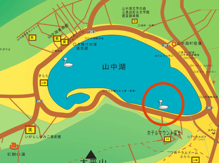 | 山中湖北岸 冬はガンカモ類を近くで観察できる。コブハクチョウは餌付けされていて通年観察できる。観察場所は北岸の中間地点の浜(大出山入り口付近)が間近で適地だ。写真愛好家には、冬、富士山をバックに湖に浮かぶ白鳥など大型の冬鳥を撮影できるので好評だ。餌付けされて留鳥となっている白鳥には毎年数羽の子白鳥が生まれるので、親子の白鳥を観察することもできる。ガンカモ類はマガモ、ヒドリガモ、ホシアイサなどが観察できる。スズメ、ツバメ、トビ、カラス、カワラヒワ、セキレイ類はもちろんのこと、季節によってはカワセミも観察できる。 山中湖の湖畔を離れると南側の別荘地の中に「洞の水」と呼ばれる野鳥の水のみ場がある。カラ類が水浴びする姿が観察できる。 農道公園は富士吉田市上吉田の市立病院南側に広がる水田地帯だ。富士山に向かってまっすぐな道が走り、突き当たりに狭い公園がちょこんとある。野鳥観察には、この水田地帯の最も南側を走る狭い農道から水田に来る野鳥を観察する。水田なので小型の水鳥が良く観察できる。また、水田の南側にある貯水池の近くに水車小屋がある公園でもセキレイ類が良く観察できる。 季節にもよるがシギ、セキレイ類、水の引いた後にはカケス、ビンズイも見かける。なかなか直接撮影ができないがヒバリもはるか上空で鳴いている。山にも近いので、ホオジロ、モズも見かける。富士五湖では比較的良く観察できる場所である。 東電明見取水口→東電取水口野鳥写真 東電明見取水口は桂川を下って富士吉田市の東端近くにある。富士急行線寿駅前の県営寿団地の南側になる。取水のために川をせき止めているので、小さな池のようになっている場所だ。少し上流にニジマスだろうか養魚場があり、そこから抜け出た魚がいるため、それをねらった中型の野鳥が多い。 年間を通して多いのはトビで、いつでも上空を旋回しているのが観察できる。池の周りの木には黒い大きな花のように群がってとまっている。冬になるとコサギの群れがやってくる。狭い池だがガンカモ類もやってくる。 ここに来る野鳥は、警戒心が強いのか、こちらの姿が良く見えてしまうのか、あまり近くで観察できない。 近くではカラ類やセキレイ類も多い。また夏になると、すぐそばの高速道路下にイワツバメがやってくる。 難点は、釣りが解禁となる季節には釣り人が多く、野鳥が離れてしまうことだ。釣り人にも絶好の場所なのだ。 河口湖も山中湖同様冬のガンカモ類、白鳥類が良く観察できる。コブハクチョウは餌付けされているので、近くに行っても怖がらない。通年観察できる。この餌付けにガンカモ類も加わるので、にぎやかだ。餌付けされている場所は北岸の河口地区から大石地区に入ったあたりで、サニーデ・ビレッジと大石公園の中間あたりだ。 マガモ、ヒドリガモなどカモ類の他にオオバンも多い。国内では珍しいといわれているシジュウカラガンも通年で観察できる。カワウやアオサギなどの大型の野鳥も楽しめる。山に囲まれた湖なので湖畔にはセキレイ類やカラ類も多い。初夏、北岸の大石公園周辺や南岸の八木崎公園周辺のアシが良く茂った場所ではオオヨシキリがうるさいほどに鳴いている。 富士吉田市の富士北麓公園近くにある環境科学研究所には室内から屋外の野鳥を観察するための窓が備えてあり、林の中にいる野鳥を直接観察できる。筆者はあまり行っていない場所なので、いつでも見ることができるかどうかは不明。環境科学研究所周辺での野鳥観察経験としては鳴き声は聞こえるけれど、姿は見えずという経験が多い。 河口湖フィールドセンターは富士スバルラインに入る手前を北西に少し入った場所にある。河口湖胎内に併設して作られた自然観察施設だ。ここに屋外の樹海を観察できるように野鳥観察用の窓が設けられている。 いつ行っても観察できる訳ではないが、長時間粘るつもりなら身近で野鳥を観察できるだろう。 場所からカラ類が多いと思う。著者はあまり利用したことがない。 西湖の奥、根場(ねんば)を西に樹海の端の道(大正道)を道なりに進むと左手に広い芝生の広場が現れる。 しゃれた洋風の建物が事務棟になっている。ここが西湖野鳥の森公園で、樹海の中まで相当広い公園になっている。事務棟から左手奥に進むとすぐにわらぶき屋根の小屋があり、その前の広場の片隅に餌台がたっている。 カラ類が頻繁にやってくる。 野鳥の方が慣れているのか、近づいても逃げない。餌を手に持つと、手の上や肩に乗ってくる。 野鳥と一緒に楽しめる施設である。 富士山スバルラインの四合目と五合目の中間に奥庭入り口がある。トイレと駐車場があるので、ここに車を止めると奥庭はすぐだ。矢印にそって林の中の坂を下ると突き当たりに山荘がある。その家の右手に小さな池があり、小鳥の水飲み場となっている。夏場には野鳥の写真家が立すいの余地なくカメラを構えている。 カラ類をはじめ亜