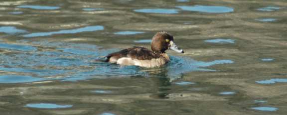 | キンクロハジロ(オス):このカモも富士北麓では良く飛来します。警戒心が強いのか、いつも遠くにいるので、なかなか鮮明な写真が撮れません。今年の定期調査では16.4%で三番目に多く観察されました。 | |||||||||||