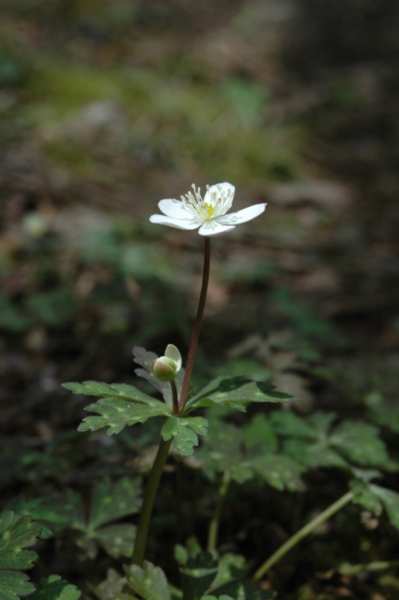 山林の中に咲く山野草(ヒトリシズカとニリンソウ(右))