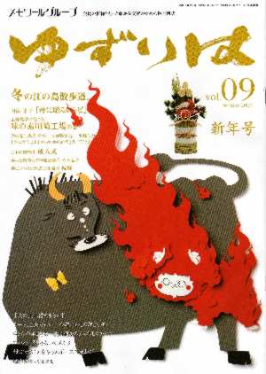 | 火の玉小僧 2007年5月12日撮影 (富士吉田市) 火の玉小僧は切り絵芸人の百鬼丸が創作した架空の生き物、ひょうきんでちょっとかわいらしいのが受けたのか、氏の代表作の一つになっている。現在メモワールグループの定期雑誌「ゆずりは」の表紙に毎号出現している。(右は2009年新年号の「ゆずりは」)その火の玉小僧が富士山五合目に雪形として出現。2009年はもう姿を消したが、来年以降が楽しみだ。 |