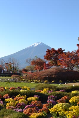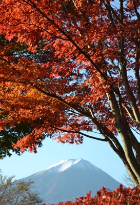 そのためか富士山の周囲も雲が多く、紅葉シーズンにも係わらずくっきりとした富士山が顔を見せてくれませんでした。 しかし、ここに来てようやく気温も下がりご覧のような美しい紅葉と富士山を見ることができました。 多少の曇りでも紅葉はきれいですが、やはり真っ青な空にさんさんと降り注ぐ太陽の下の紅葉にはかないません。 河口湖の紅葉は11/16現在上と左右の写真でご覧のように、まだまだ見頃です。 |