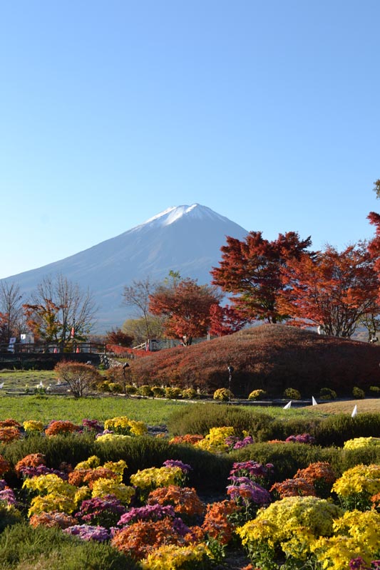 紅葉まつり会場からはくっきりとした富士の姿が見えます。河口湖(11/16)