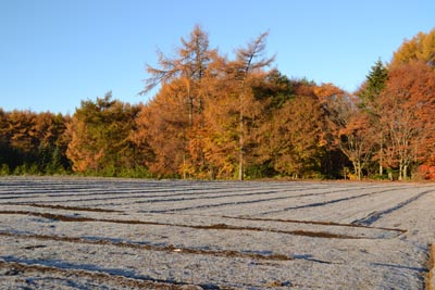 鳴沢村では霜が降りて