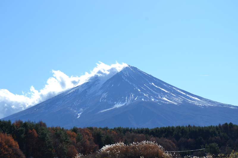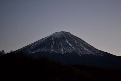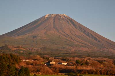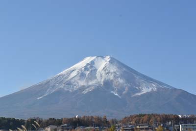 | 我が家の周りの道路は落葉で茶色く変身、木々の間からは空が眺められるほどに透き透きです。 今年は、少し前の11月20日には気温が上昇、右の写真のような地肌ばかりの富士山でした。 それが今は真っ白です。 鳴沢の深夜の外気は氷点下。 スタッドレスの季節です。 同時に雪形の季節でもあります。 今年も冬を楽しみたいですね。 |