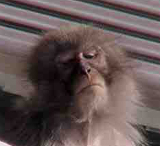 気持ち良さそうに寝ている右のお猿くんは、実は人騒がせな侵入者で、もう古い話ですが、2003年富士吉田市内の旭町の民家の軒先で居眠りをしていた猿なのです。